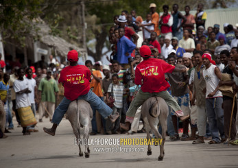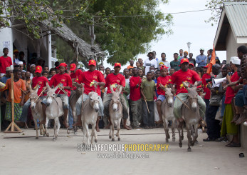 Donkey race in town during Maulid festival, Lamu county, Lamu, Kenya