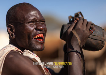 Samburu tribe man drinking cow blood, Samburu County, Maralal, Kenya