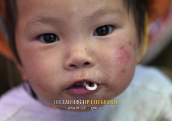 Chinese Baby Eating Noodles, Lijiang, Yunnan Province, China