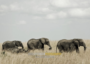 Elephants in line in the savannah, Rift Valley Province, Maasai Mara, Kenya