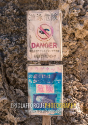 No swimming billboard in sunset beach, Yaeyama Islands, Ishigaki, Japan