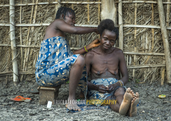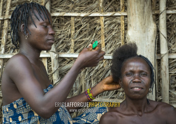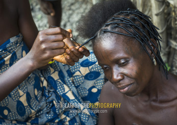 Benin, West Africa, Onigbolo Isaba, hairdresser at home in holi tribe