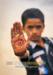 Hinduism Symbol On A Hand, Maha Kumbh Mela, Allahabad, India