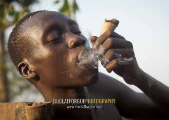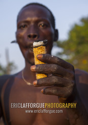Majang Tribe Man Smoking For A Celebration, Kobown, Ethiopia