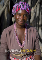 Ovambo Woman With Traditionnal Clothing, Ondangwa, Namibia