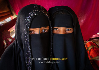 Portrait of Rashaida tribe veiled girls, Kassala State, Kassala, Sudan