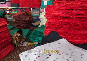 Indian workers in Salim's paper handmade paper factory, Rajasthan, Sanganer, India