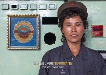 North Korean female worker at Hungnam nitrogen fertilizer plant, South Hamgyong Province, Hamhung, North Korea