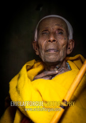 Old ethiopian nun in yellow shawl, Amhara Region, Lalibela, Ethiopia