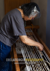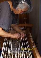 Kurume Kasuri preparation in Aika Tanaka Kasuri Kobo workshop, Kyushu region, Chikugo, Japan