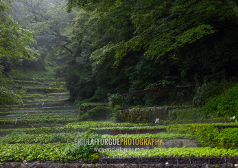 Cultivation of wasabi crops in the hills, Shizuoka prefecture, Ikadaba, Japan