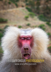 Hamadryas baboon papio hamadrya with closed eyes, Central region, Asmara, Eritrea