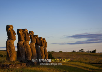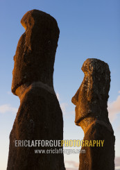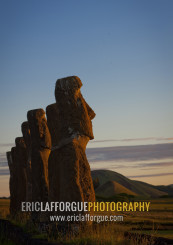 Moais in ahu akivi at sunset, Easter Island, Hanga Roa, Chile