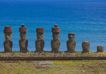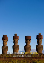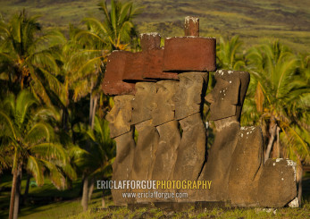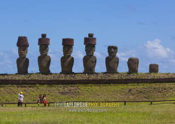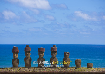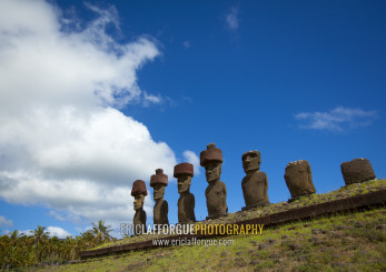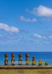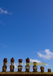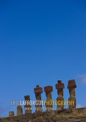 Moais in ahu nau nau at anakena beach, Easter Island, Hanga Roa, Chile