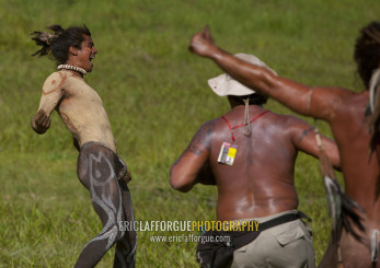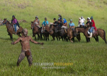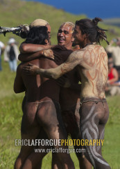 Haka pei banana trunk competition in Tapati festival, Easter Island, Hanga Roa, Chile