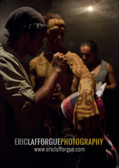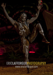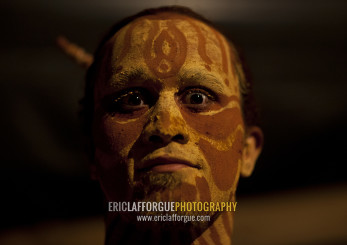 Takona body painting competition during tapati festival, Easter Island, Hanga Roa, Chile
