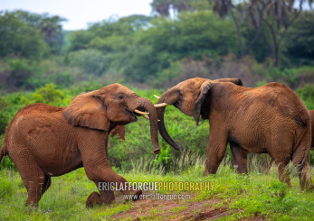 Elephants fighting, Samburu County, Samburu National Reserve, Kenya