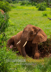 Elephant lying in the mud, Samburu County, Samburu National Reserve, Kenya