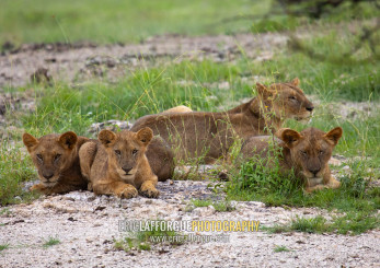 Lions family resting after hunt, Samburu County, Samburu National Reserve, Kenya