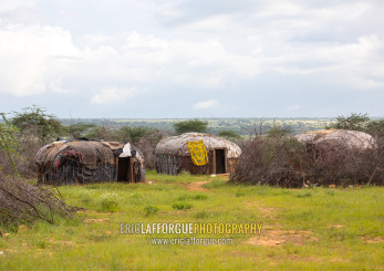 Saburu tribe village with huts, Samburu County, Samburu National Reserve, Kenya