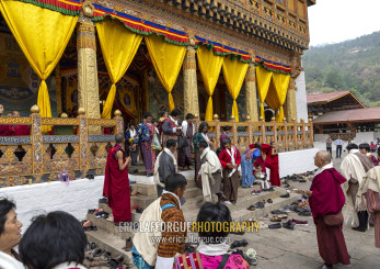 Bhutanese monks and pilgrims in Punakha dzong, Punakha dzongkhag, Punakha, Bhutan