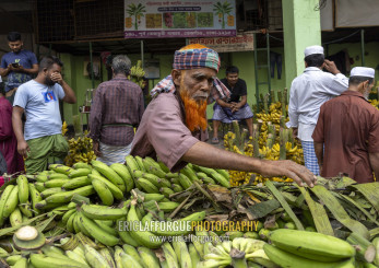 Bangladeshi man selling bananas at Kawran Bazar, Dhaka Division, Dhaka, Bangladesh