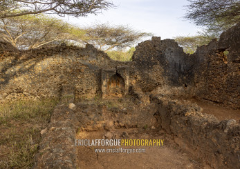 Takwa ruins in the middle of acacias, Lamu, Manda island, Kenya