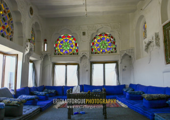 Traditional house mafraj with stained-glass windows, Amanat Al-Asemah, Sanaa, Yemen