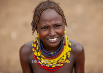 Dassanech teenage girl wearing beaded necklaces, Omo valley, Omorate, Ethiopia