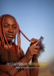 Young Himba tribe woman with traditional hairstyle, Omusati region, Ruacana, Namibia