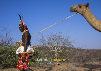 Rendille tribesman with his camel, Samburu county, Samburu national reserve, Kenya