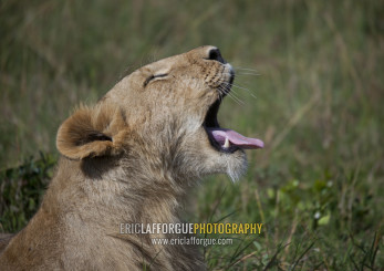 Lioness (panthera leo) cub roaring, Rift valley province, Maasai mara, Kenya