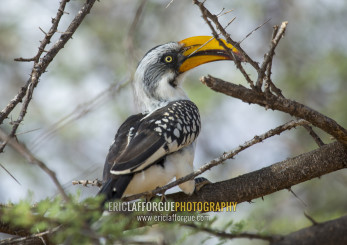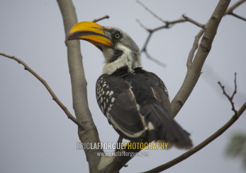 Yellow-billed hornbill sitting on a branch, Samburu county, Samburu national reserve, Kenya