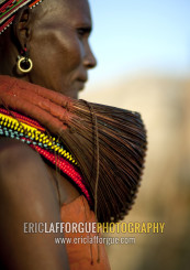 Rendille tribe woman wearing a mpooro Engorio necklace, Rift Valley Province, Turkana lake, Kenya