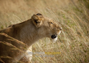 Lioness in the savannah, Rift Valley Province, Maasai Mara, Kenya