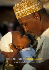 Muslim father with his baby, Lamu County, Lamu, Kenya