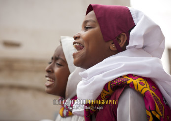 Young muslim girls singing during Maulid festival, Lamu County, Lamu, Kenya