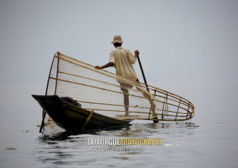 Man Rowing A Fishing Boat, Inle Lake, Myanmar