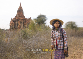Sheperd Woman In Front Of An Old Temple, Bagan, Myanmar