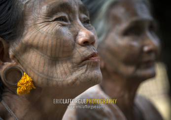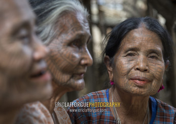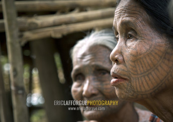 Tribal Chin Women With Spiderweb Tattoo On The Faces, Mrauk U, Myanmar