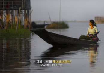 Woman Rowing In A Boat, Inle Lake, Myanmar
