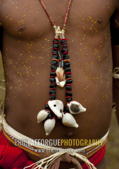 Detail of a tribal dancer with shells necklaces during a ceremony, Milne Bay Province, Trobriand Island, Papua New Guinea