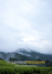 Tea plantations in the fog, Nyungwe Forest National Park, Gisakura, Rwanda