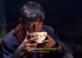 Wakhi teenage boy drinking salty milk tea, Big pamir, Wakhan, Afghanistan