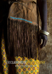 Tanzania, Serengeti Plateau, Lake Eyasi, datoga tribe woman wearing a leather dress
