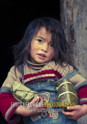 Black hmong girl holding holding wrapped rice cakes for tet, Sapa, Vietnam