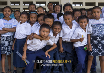 Panama, San Blas Islands, Mamitupu, Kuna Tribe Children In A School