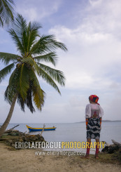 Panama, San Blas Islands, Mamitupu, Young Kuna Indian Woman Lokking At The Sea