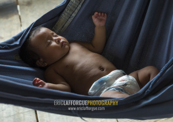 Panama, Darien Province, Bajo Chiquito, Embera Tribe Baby Sleeping In A Hammock