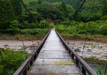 Wooden bridge in forest, Kyoto Prefecture, Miyama, Japan